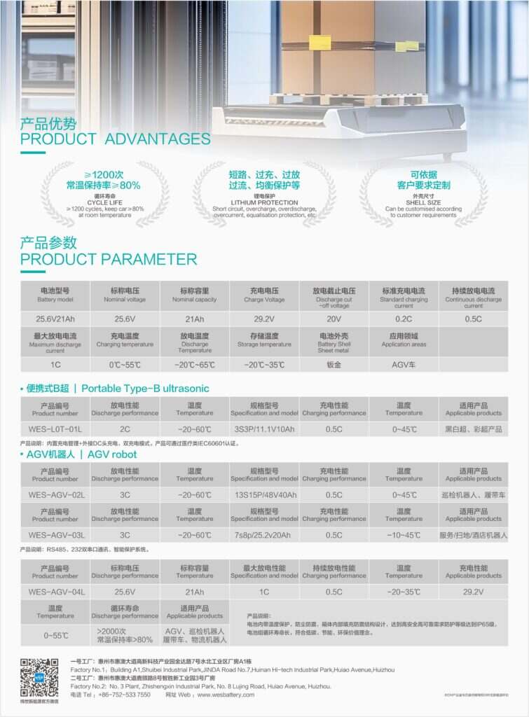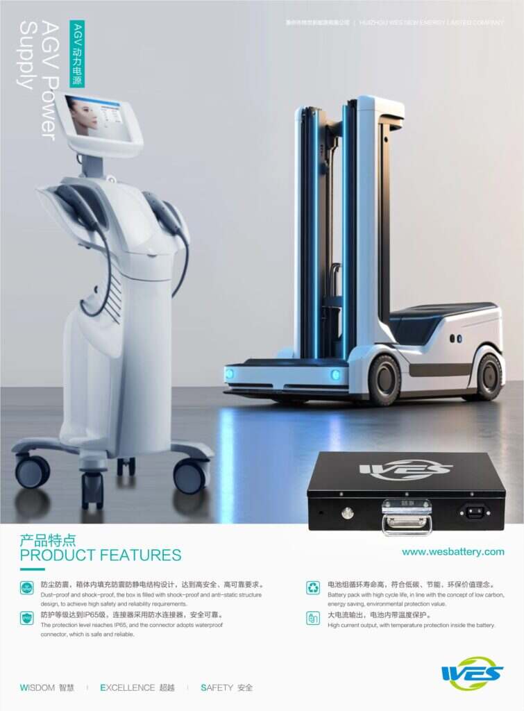 Engineered for industrial automation, WES AGV batteries with ?LiFePO4 cell technology? deliver ?10,000+ cycles? at 80% capacity retention, powering Autonomous Guided Vehicles in harsh environments (-30℃~60℃).